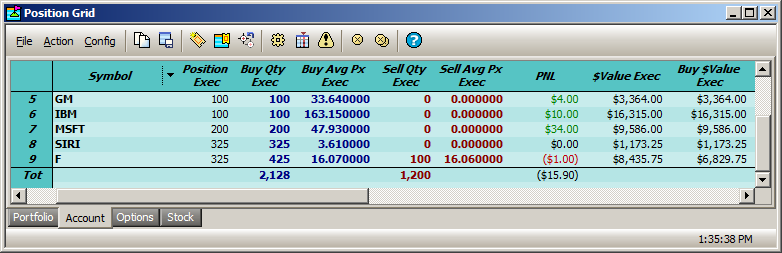Position Grid allows you to view accumulated positions by portfolio, account or firm.